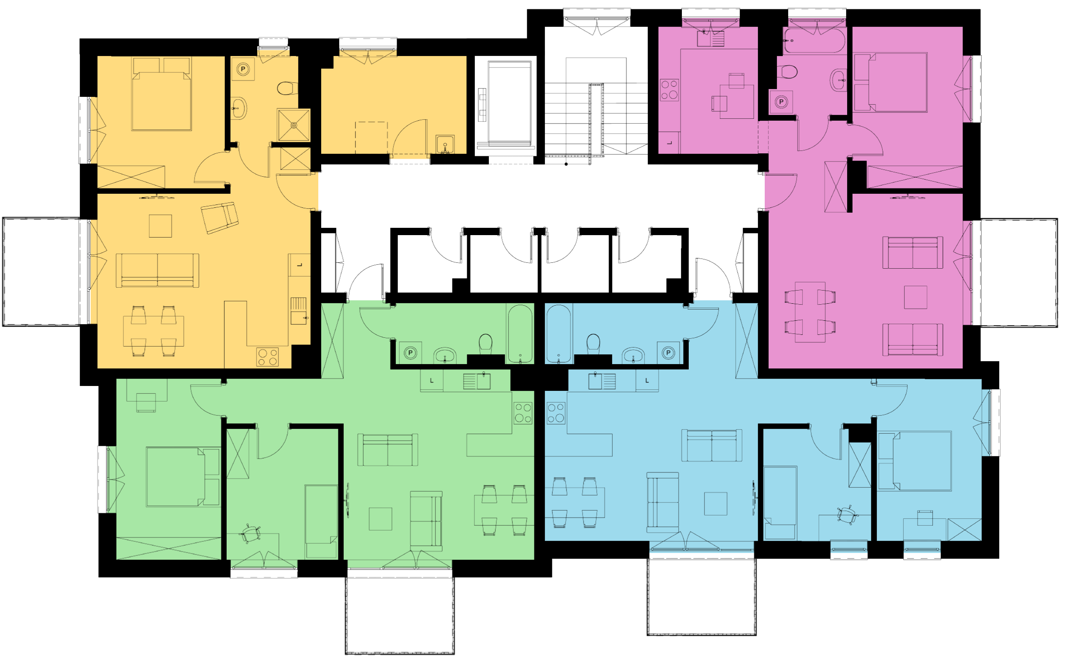 - Udogodnienia: 16 komórek lokatorskich oraz miejsca parkingowe. Przestrzeń dla każdego: mieszkania na parterze z ogródkami, a na wyższych piętrach z przestronnymi balkonami.